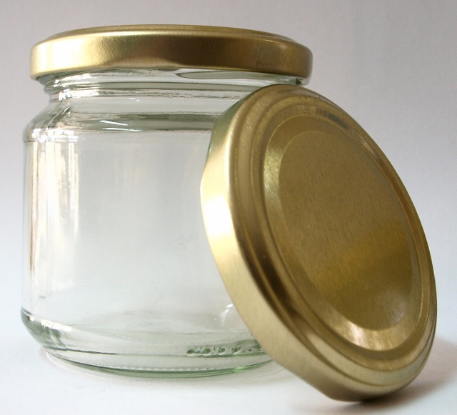 -250g Rundglas mit goldenem oder schwarzem Metalldeckel im Karton