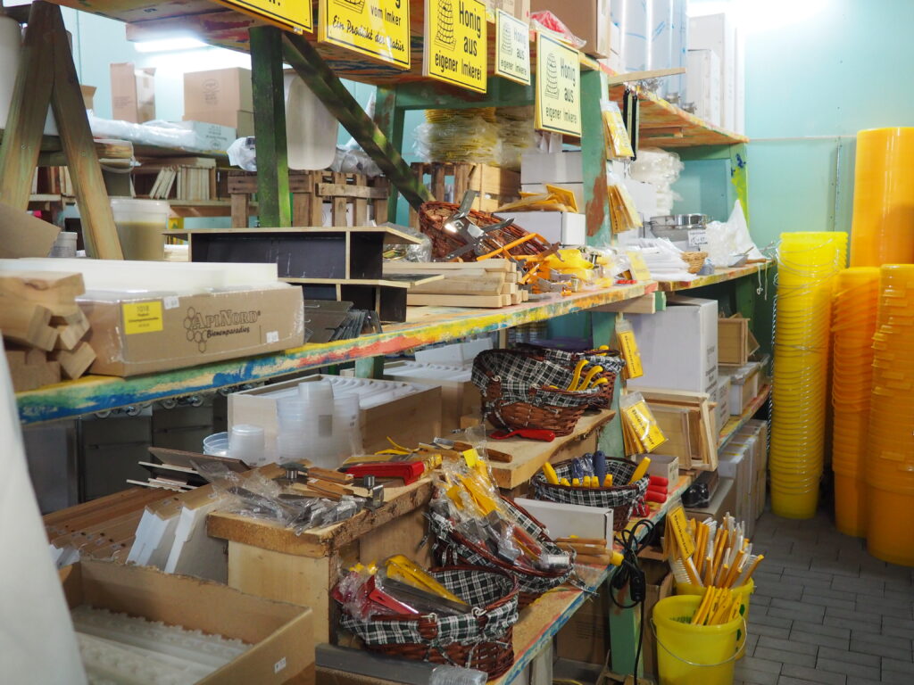 Was auch nicht fehlen darf, sind Rähmchen, Draht, Ösen, Abstandshalter, Mittelwände, Futtertaschen und Honigeimer.